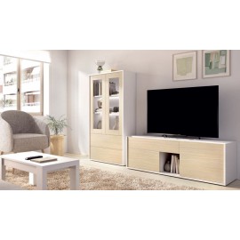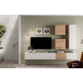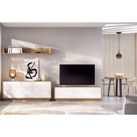 COMP. MODULAR SALÓN DE 340CM. BLANCO BRILLO-ROBLE. *CALIDAD ALTA*