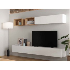 COMP. MODULAR SALÓN DE 320CM. BLANCO BRILLO-ROBLE-GRIS. *CALIDAD ALTA*