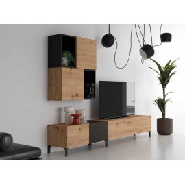 COMP. MODULAR SALON DE 319CM. ROBLE ALABAMA/GRAFITO. **MAXIMA CALIDAD**