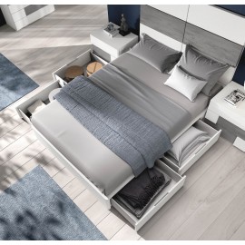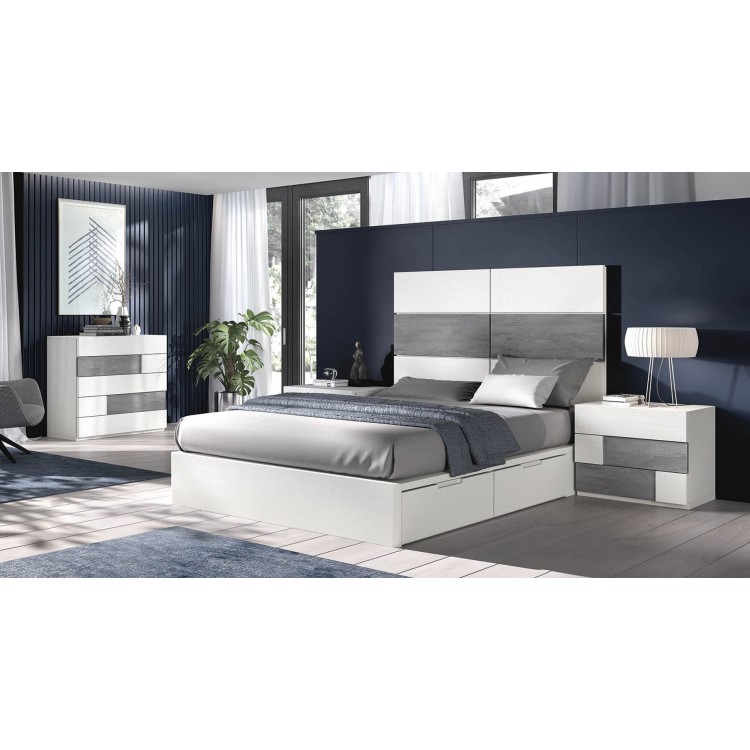 DORMITORIO S/150 BLANCO NORDIC-BORA. (PRECIO CON COMODA+ESPEJO) *CANAPE NO INCLUIDO* MEDIDA CABEZAL: 291CM. MEDIDA MESITAS: 62CM. MEDIDA COMODA: 102CM.