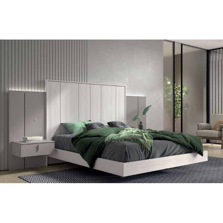 DORMITORIO S/135-150 NOGAL-PERLA. ***PRECIO DE CABEZAL + 2 MESITAS*** CABECERO CON LUZ.