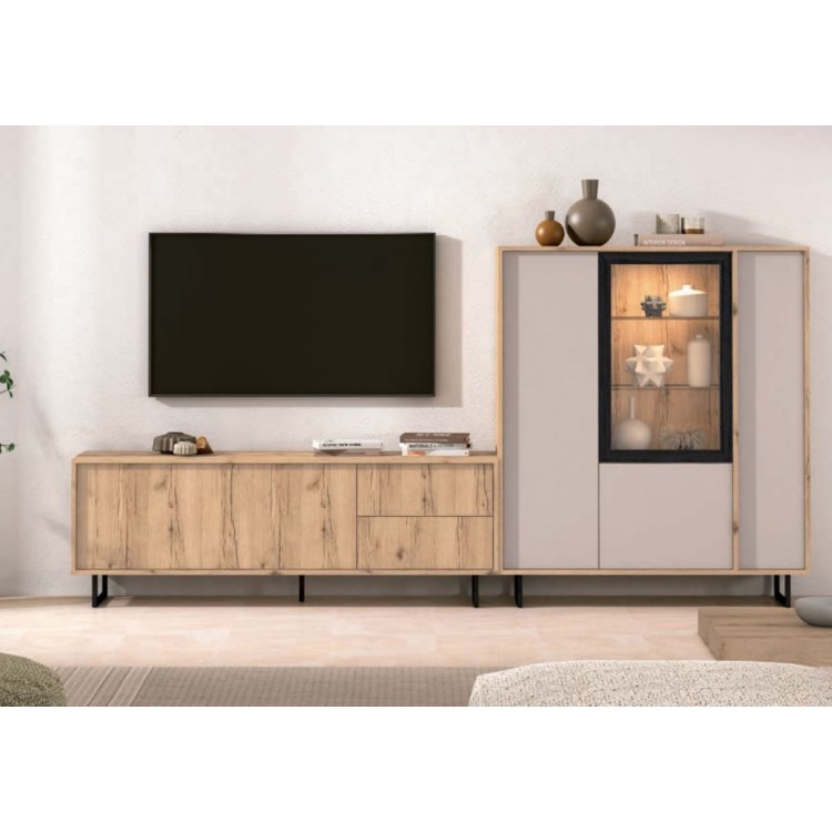 COMP. MODULAR SALON DE 308CM. ROBLE RUSTIC-BLANCO **MAXIMA CALIDAD**