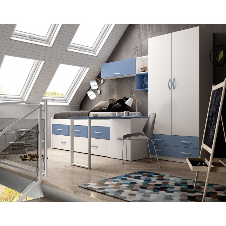 COMP. JUVENIL CAMA ABAT.VERTICAL 90X190 BLANCO-AMBAR-AVIO. ***MAXIMA CALIDAD*** (CONSULTAR PRESUPUESTO EN TIENDA)