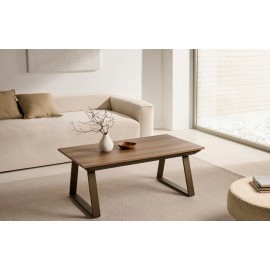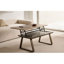 MESA DE CENTRO ELEVABLE A COMEDOR 100X50 ABIERTA 100X100 TAPA ROBLE-PATAS METALICAS
