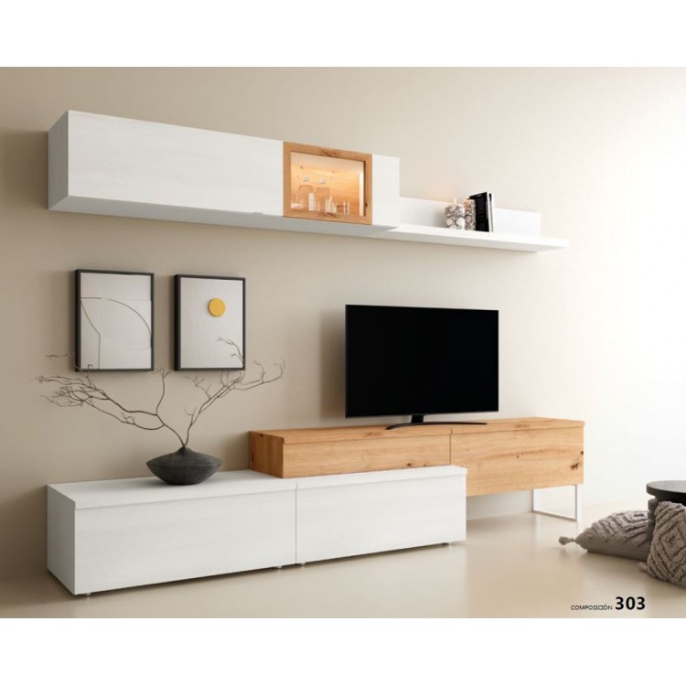 COMP. MODULAR SALON DE 298CM. NIEVE PORO-NORDICO *ILUMINACIÓN OPCIONAL*