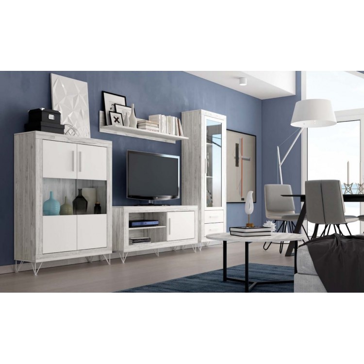 COMP. MODULAR SALON DE 300CM. NIEVE PORO-ROBLE NUDOS. **CALIDAD ALTA**