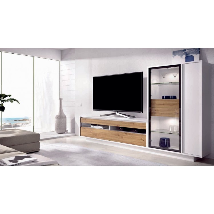COMP. MODULAR SALON DE 300CM. ROBLE NUDOS/NIEVE PORO. **CALIDAD ALTA**