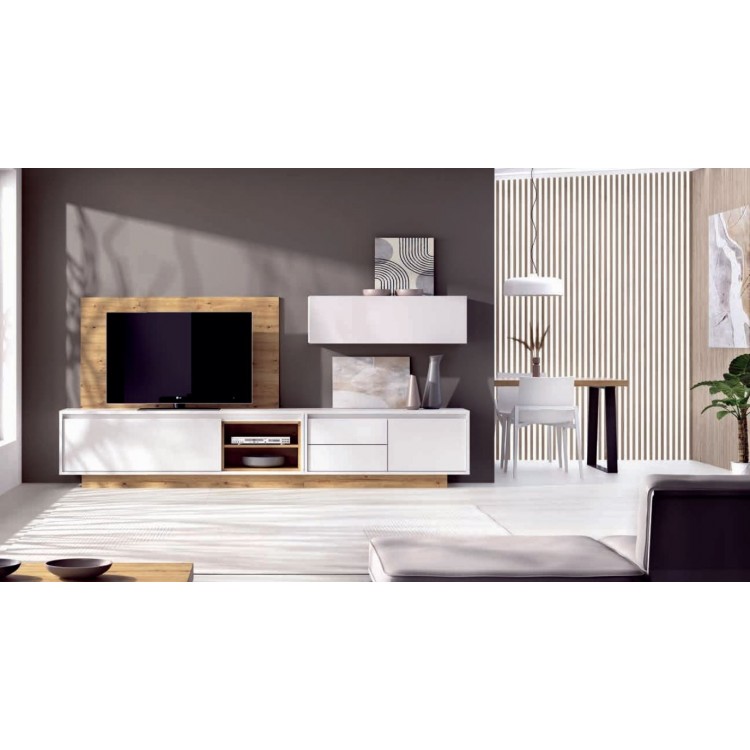 COMP. MODULAR SALÓN DE 340CM. BLANCO BRILLO-ROBLE. *CALIDAD ALTA*